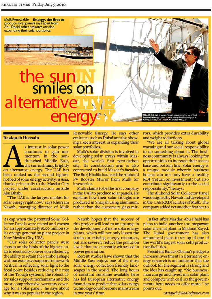 MR. KHURRAMS KHALEEJ TIMES PRESS RELEASE ON MULK ENPAR RE